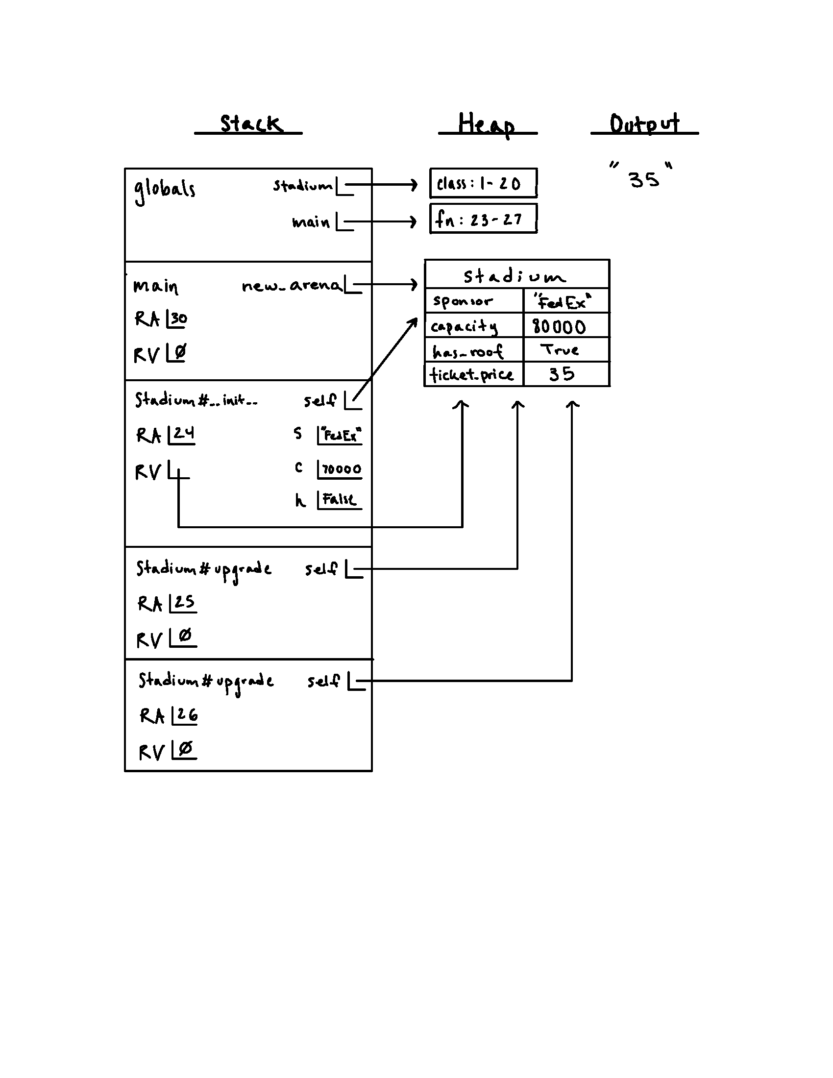- For function definitions, write the name of the function in the globals frame and draw an arrow to the corresponding function object on the heap labeled: Fn: [start line] - [end line].